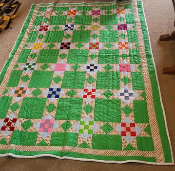 vintage jacket, quilts, other vintage material items, golf items, lamps, an electric