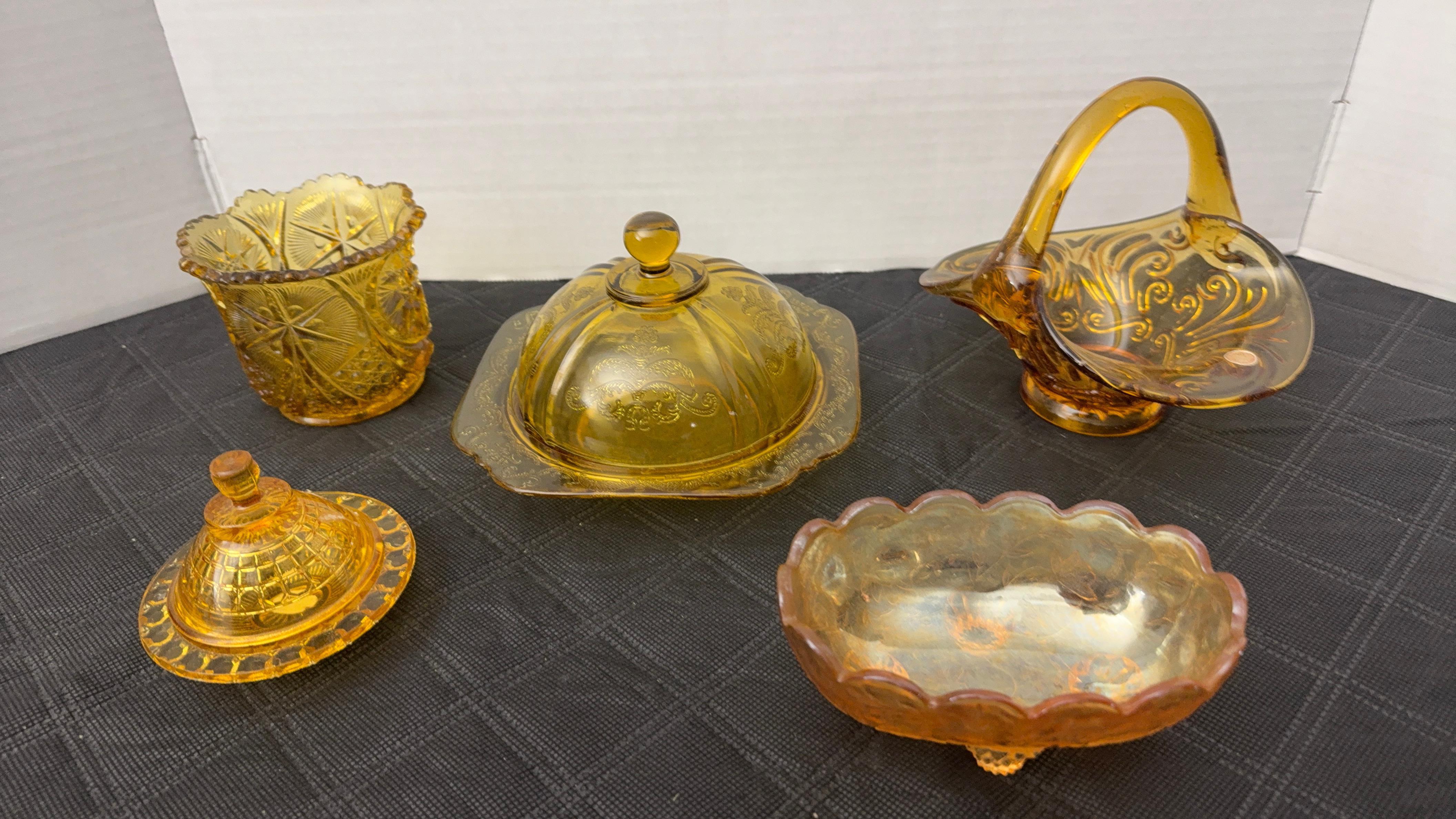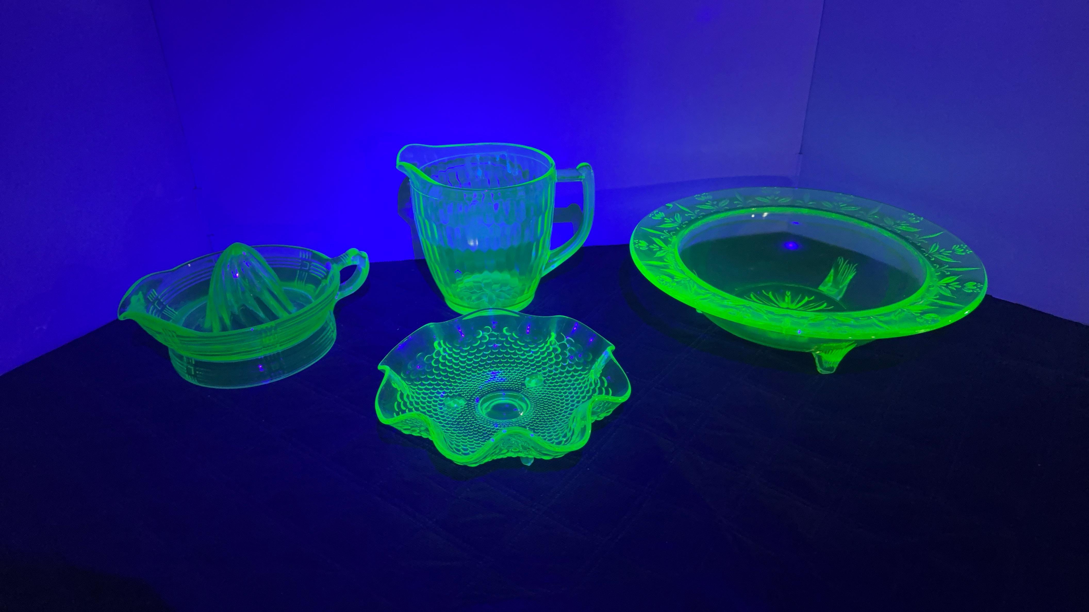 shakers, decanters, pink depression glass, uranium glass, Frankoma pottery,